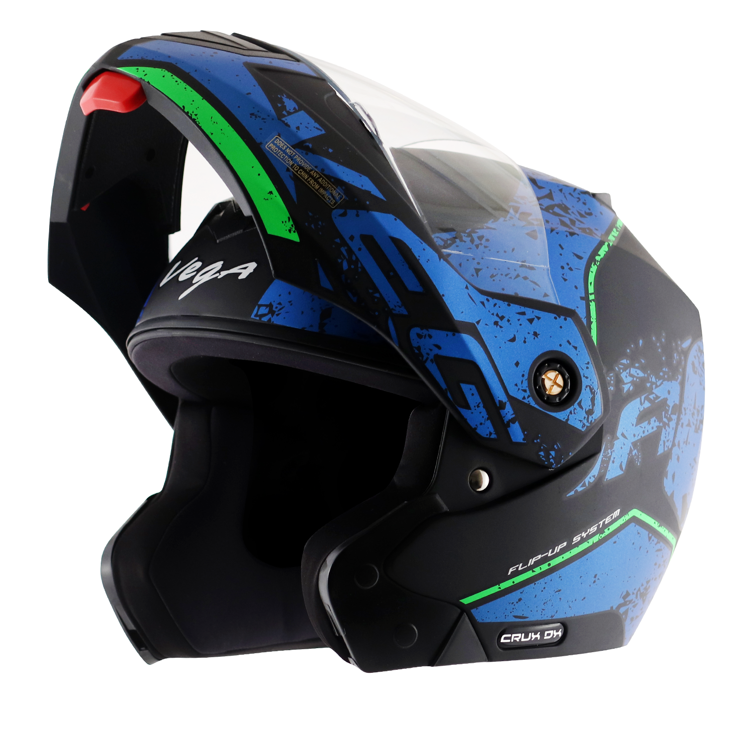 The Vega Crux DX Victor Helmet merges modular functionality with a striking, contemporary design. Its bold accents and sleek contours give the helmet a sporty and confident look, while the flip-up modular feature adds convenience for riders on the go. Lightweight yet durable, it ensures all-day comfort without compromising safety. Perfect for urban commuting or adventurous rides, the Crux DX Victor Helmet combines protection, style, and flexibility in a single premium package.